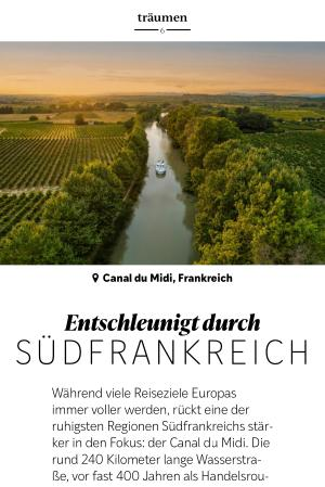 Während viele Reiseziele Europas immer voller werden, rückt eine der ruhigsten Regionen Südfrankreichs stärker in den Fokus: der Canal du Midi. Die rund 240 Kilometer lange Wasserstraße, vor fast 400 Jahren als Handelsroute zwischen Atlantik und Mittelmeer gebaut, führt von Toulouse bis zum Étang de Thau bei Sète und gilt als eines der bedeutendsten Wasserbauwerke Europas. Vor 30 Jahren erklärte die UNESCO den Kanal zum Weltkulturerbe – als Meisterwerk des Ingenieurwesens und als einzigartige Kulturlandschaft.
