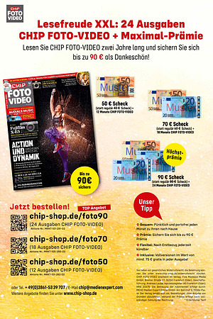 50 € Scheck( statt regulär 40 € Scheck) + 12 Monate CHIP FOTO-VIDEO