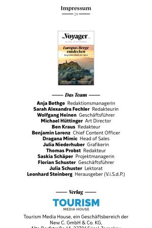 Tourism Media House, ein Geschäftsbereich der New C. GmbH & Co. KG, Alte Dorfstraße 14, 23701 Süsel-Zarnekau www. new-c. de E-Mail: redaktion @ new-c. de Geschäftsführer: Wolfgang Heinen und Florian Schuster