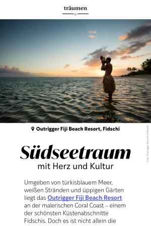 Umgeben von türkisblauem Meer, weißen Stränden und üppigen Gärten liegt das Outrigger Fiji Beach Resort an der malerischen Coral Coast – einem der schönsten Küstenabschnitte Fidschis. Doch es ist nicht allein die paradiesische Lage, die dieses Resort auszeichnet. Entscheidend ist das Erlebnis, das hier entsteht: eine Verbindung aus Gastfreundschaft, Natur und Kultur, die durch den „ Outrigger Way“ spürbar wird. Diese Philosophie betont die besondere Nähe zwischen Gästen, den Menschen vor Ort und der Destination selbst. Fidschi selbst begeistert mit über 300 Inseln, spektakulären Stränden und einer Kultur, die vom Gemeinschaftsgeist geprägt ist. Wer hierher reist, erlebt nicht nur Urlaub, sondern den echten Südseespirit.