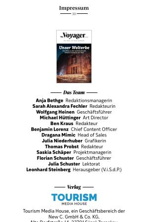 Tourism Media House, ein Geschäftsbereich der New C. GmbH & Co. KG, Alte Dorfstraße 14, 23701 Süsel-Zarnekau www. new-c. de E-Mail: redaktion @ new-c. de Geschäftsführer: Wolfgang Heinen und Florian Schuster