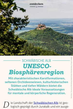 Mit charakteristischen Karstformationen, seltenen Orchideenwiesen, kulturhistorischen Stätten und tiefen Wäldern bietet die Schwäbische Alb ideale Voraussetzungen für mentale und körperliche Regeneration.
