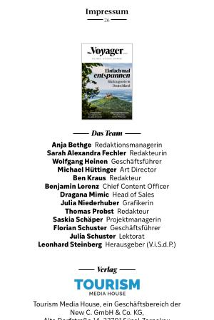 Tourism Media House, ein Geschäftsbereich der New C. GmbH & Co. KG, Alte Dorfstraße 14, 23701 Süsel-Zarnekau www. new-c. de E-Mail: redaktion @ new-c. de Geschäftsführer: Wolfgang Heinen und Florian Schuster