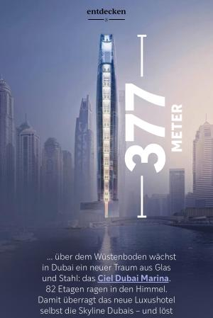 ... über dem Wüstenboden wächst in Dubai ein neuer Traum aus Glas und Stahl: das Ciel Dubai Marina. 82 Etagen ragen in den Himmel. Damit überragt das neue Luxushotel selbst die Skyline Dubais – und löst das Gevora Hotel als höchstes Hotel der Welt ab. In einer Stadt, die Superlative liebt, ist der neue Rekord über den Wolken mehr als nur Architektur – er ist ein Statement für die nie endende Faszination Dubais, immer höher hinauszuwollen. Reservierungen sind ab dem 15. November 2025 möglich. Luxury Travel begleitet die Markteinführung des neuen Hotels von Beginn an und bietet Reisenden durch enge Zusammenarbeit mit dem Haus ausgewählte Zusatzleistungen, darunter etwa ein kostenfreies Upgrade bei Buchung über die Agentur.