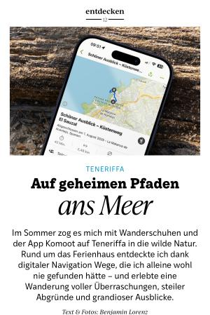 Im Sommer zog es mich mit Wanderschuhen und der App Komoot auf Teneriffa in die wilde Natur. Rund um das Ferienhaus entdeckte ich dank digitaler Navigation Wege, die ich alleine wohl nie gefunden hätte – und erlebte eine Wanderung voller Überraschungen, steiler Abgründe und grandioser Ausblicke.