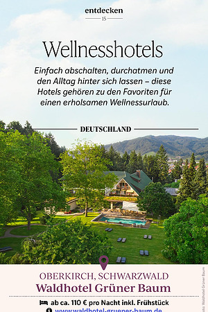 � ab ca. 110 € pro Nacht inkl. Frühstück � www. waldhotel-gruener-baum. de