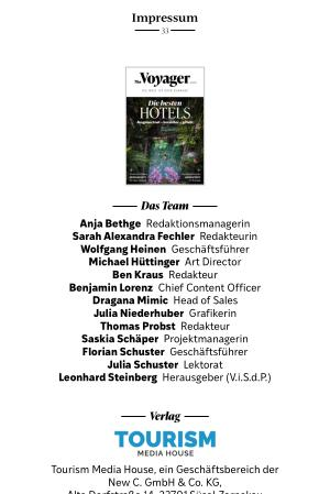 Tourism Media House, ein Geschäftsbereich der New C. GmbH & Co. KG, Alte Dorfstraße 14, 23701 Süsel-Zarnekau www. new-c. de E-Mail: redaktion @ new-c. de Geschäftsführer: Wolfgang Heinen und Florian Schuster