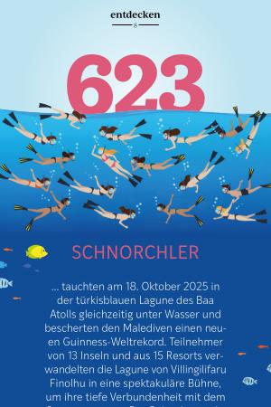 ... tauchten am 18. Oktober 2025 in der türkisblauen Lagune des Baa Atolls gleichzeitig unter Wasser und bescherten den Malediven einen neuen Guinness-Weltrekord. Teilnehmer von 13 Inseln und aus 15 Resorts verwandelten die Lagune von Villingilifaru Finolhu in eine spektakuläre Bühne, um ihre tiefe Verbundenheit mit dem Ozean zu zeigen. Der Rekord ist mehr als eine beeindruckende Zahl: Er steht für Gemeinschaft, für die Bedeutung des Meeres im Alltag der Inselnation und für das Ziel, Tourismus und Meeresschutz miteinander zu verbinden.