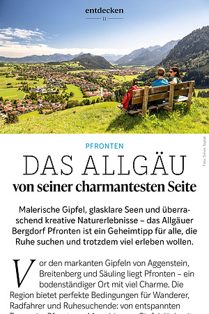 Malerische Gipfel, glasklare Seen und überraschend kreative Naturerlebnisse – das Allgäuer Bergdorf Pfronten ist ein Geheimtipp für alle, die Ruhe suchen und trotzdem viel erleben wollen.