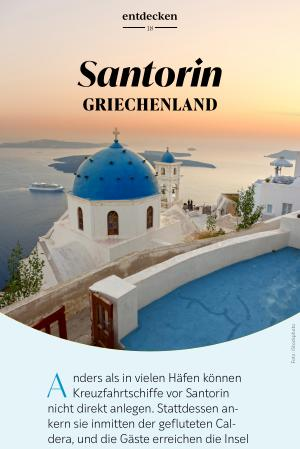 Kreuzfahrtschiffe vor Santorin nicht direkt anlegen. Stattdessen ankern sie inmitten der gefluteten Caldera, und die Gäste erreichen die Insel mit Tenderbooten – eine Anreise, die bereits den Auftakt zu einem unvergesslichen Erlebnis bildet. Vom Wasser aus eröffnet sich der ikonische Anblick der weiß getünchten Häuser, die hoch über dem Meer an den steilen Felswänden kleben. Im Süden der Kykladen gelegen, zählt Santorin zu den eindrucksvollsten Reisezielen des östlichen Mittelmeers. Die charakteristischen Häuser mit ihren blauen Kuppeln prägen wie kein anderer Ort das Bild der Ägäis als Region des Lichts. Besonders die