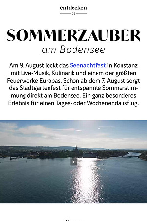 Am 9. August lockt das Seenachtfest in Konstanz mit Live-Musik, Kulinarik und einem der größten Feuerwerke Europas. Schon ab dem 7. August sorgt das Stadtgartenfest für entspannte Sommerstimmung direkt am Bodensee. Ein ganz besonderes Erlebnis für einen Tages- oder Wochenendausflug.