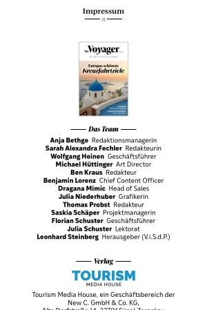 Tourism Media House, ein Geschäftsbereich der New C. GmbH & Co. KG, Alte Dorfstraße 14, 23701 Süsel-Zarnekau www. new-c. de E-Mail: redaktion @ new-c. de Geschäftsführer: Wolfgang Heinen und Florian Schuster