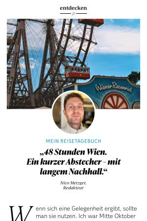 W enn sich eine Gelegenheit ergibt, sollte man sie nutzen. Ich war Mitte Oktober auf eine Hochzeit in der Nähe von Graz eingeladen – und da der Flug ab Köln ohnehin über Wien ging, dachte ich mir: Warum nicht gleich ein bisschen Hauptstadtluft schnuppern? Zwei volle Tage Zeit – nicht viel, aber genug, um sich in eine Stadt zu verlieben.