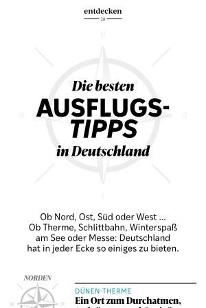 Ob Nord, Ost, Süd oder West... Ob Therme, Schlittbahn, Winterspaß am See oder Messe: Deutschland hat in jeder Ecke so einiges zu bieten.