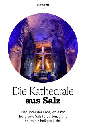 I m kolumbianischen Städtchen Zipaquirá, nordwestlich von Bogotá, liegt eines der ungewöhnlichsten Bauwerke Südamerikas: die Catedral de Sal. In einem ehemaligen Salzbergwerk entstand hier eine unterirdische Kathedrale, die aus dem Fels geschlagen wurde und bis zu 180 Meter tief in die Erde reicht. Kreuze und Gänge sind in blaues Licht getaucht – eine eindrucksvolle Verbindung von Bergbau, Religion und moderner Lichtarchitektur. Die Salzkathedrale ist heute Wallfahrtsort und beliebtes Ausflugsziel. Von Bogotá erreicht man Zipaquirá in rund einer Stunde mit dem Auto oder per Bahn auf der touristischen „ Tren de la Sabana“-Strecke. Besonders eindrucksvoll ist ein Besuch am späten Nachmittag, wenn weniger Touristen unterwegs sind und die Lichtinstallationen ihre ganze Wirkung entfalten.