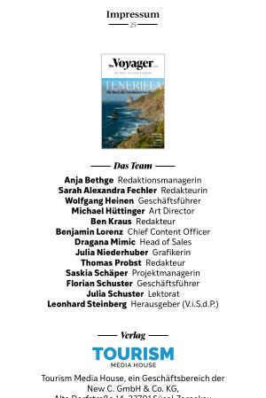 Tourism Media House, ein Geschäftsbereich der New C. GmbH & Co. KG, Alte Dorfstraße 14, 23701 Süsel-Zarnekau www. new-c. de E-Mail: redaktion @ new-c. de Geschäftsführer: Wolfgang Heinen und Florian Schuster