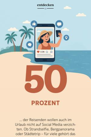 ... der Reisenden wollen auch im Urlaub nicht auf Social Media verzichten. Ob Strandselfie, Bergpanorama oder Städtetrip – für viele gehört das Posten der Urlaubserlebnisse einfach dazu, so die Ergebnisse einer Bitkom- Umfrage. Die Hälfte der Social-Media- Nutzer teilt ihre Reise in Form von Bildern oder Videos mit der digitalen Welt. Besonders aktiv sind die 30- bis 49-Jährigen: Sogar 59 Prozent von ihnen posten regelmäßig aus dem Urlaub. Doch Social Media ist mehr als nur ein digitales Reisetagebuch: 64 Prozent lassen sich dort auch zu Ausflügen oder Aktivitäten am Urlaubsort inspirieren. Allerdings zeigt sich auch die Kehrseite: Fast die Hälfte( 49 Prozent) war schon einmal enttäuscht, weil ein Ort in den sozialen Netzwerken schöner wirkte als in Wirklichkeit.