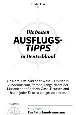 Ob Nord, Ost, Süd oder West... Ob Naturkundemuseum, Parade, Lange Nacht der Museen oder Erlebnis-Oase: Deutschland hat in jeder Ecke so einiges zu bieten.