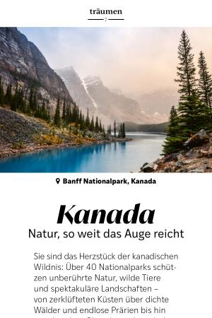 Der Banff Nationalpark in Alberta beeindruckt mit türkisfarbenen Seen und imposanten Bergpanoramen, während der Pacific Rim National Park auf Vancouver Island mit Regenwald, Strand und Surferflair überrascht. Im Osten lockt der Gros Morne National Park mit geologischen Wundern und fjordähnlichen Buchten. Dabei geht es nicht nur ums Staunen – es geht ums Erleben: Wandern, Paddeln, Wildlife- Watching oder einfach innehalten, durchatmen und den Alltag weit hinter sich lassen.