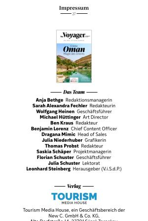 Tourism Media House, ein Geschäftsbereich der New C. GmbH & Co. KG, Alte Dorfstraße 14, 23701 Süsel-Zarnekau www. new-c. de E-Mail: redaktion @ new-c. de Geschäftsführer: Wolfgang Heinen und Florian Schuster