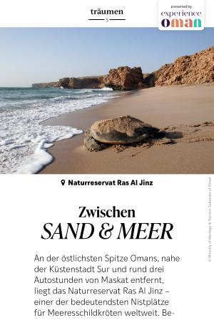 der Küstenstadt Sur und rund drei Autostunden von Maskat entfernt, liegt das Naturreservat Ras Al Jinz – einer der bedeutendsten Nistplätze für Meeresschildkröten weltweit. Besonders in den Sommermonaten kommen hier nachts hunderte Tiere an Land, um ihre Eier im warmen Sand zu vergraben – ein stilles, bewegendes Naturschauspiel. Besucher können an geführten Touren teilnehmen und mit etwas Glück Schildkröten beim Nisten oder Schlüpfen beobachten. Ein Besucherzentrum und eine nachhaltige Lodge vor Ort machen Ras Al Jinz zu einem Ort, an dem man Natur hautnah, respektvoll und in besonderer Atmosphäre erleben kann.