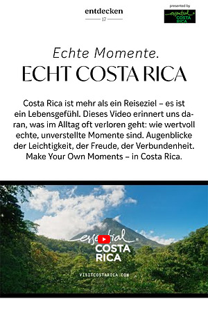 Costa Rica ist mehr als ein Reiseziel – es ist ein Lebensgefühl. Dieses Video erinnert uns daran, was im Alltag oft verloren geht: wie wertvoll echte, unverstellte Momente sind. Augenblicke der Leichtigkeit, der Freude, der Verbundenheit. Make Your Own Moments – in Costa Rica.