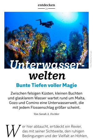 Zwischen felsigen Küsten, kleinen Buchten und glasklarem Wasser wartet rund um Malta, Gozo und Comino eine Unterwasserwelt, die mit jedem Flossenschlag größer scheint.